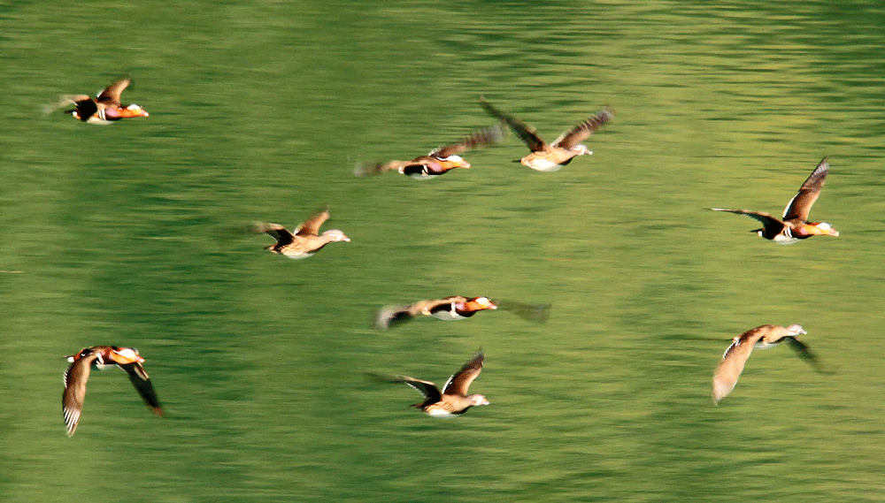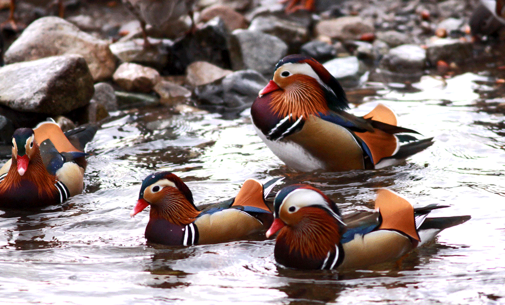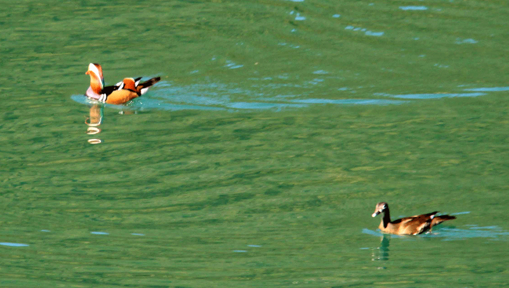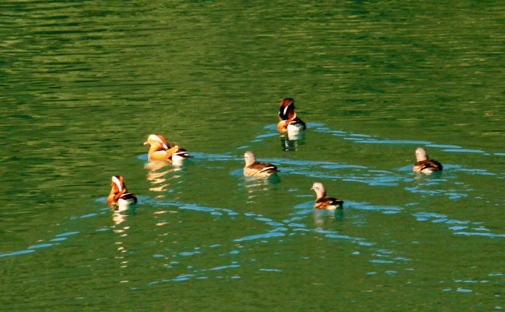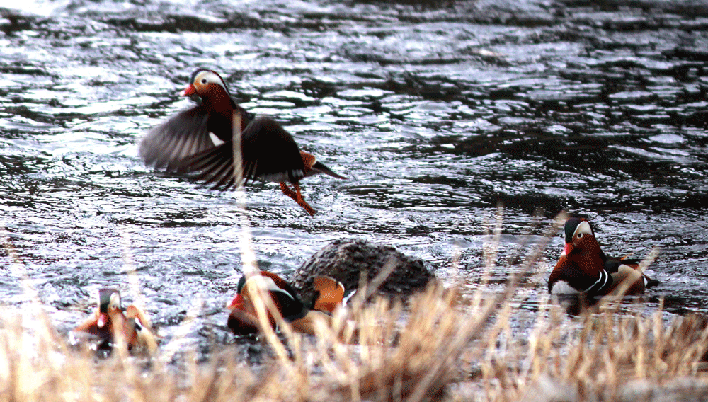 奈良県の十津川村は沢山のオシドリが集団越冬することで有名であるが