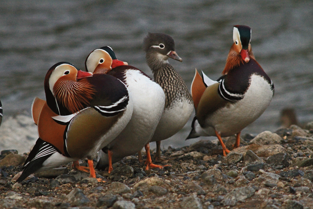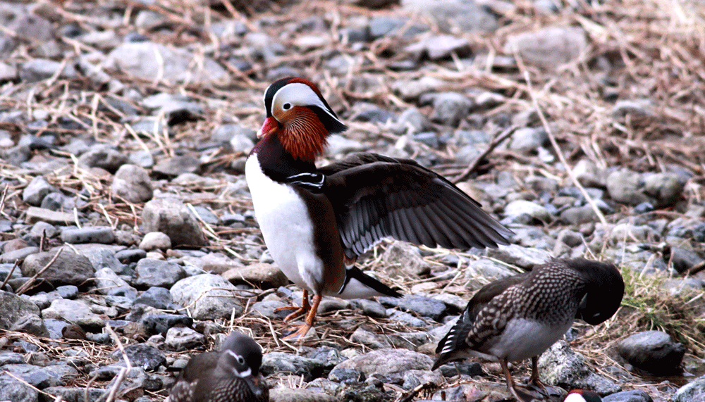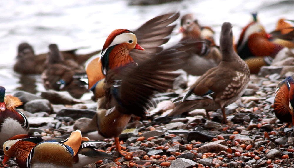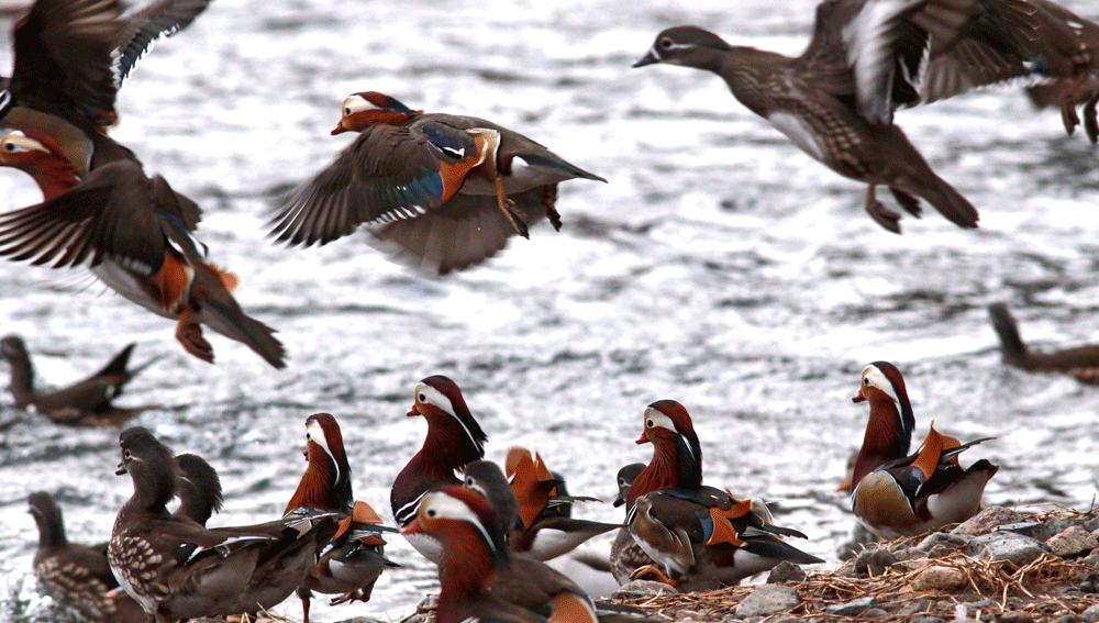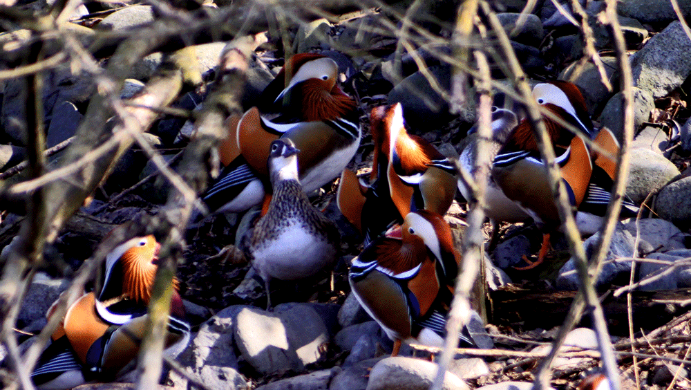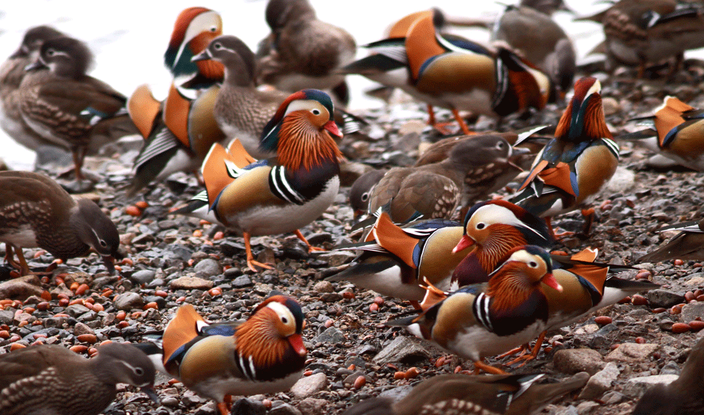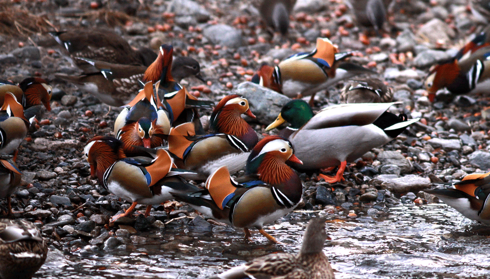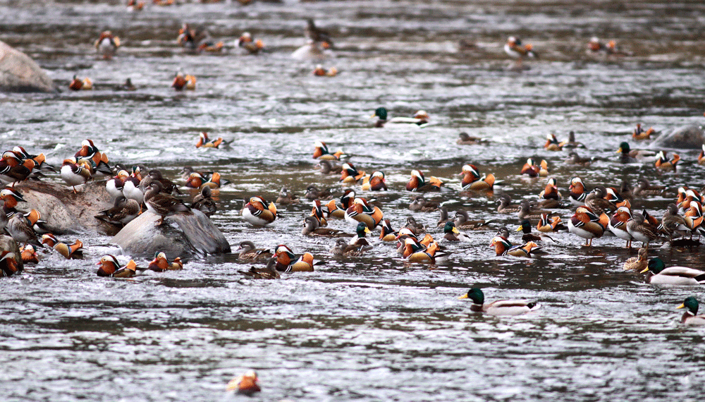 1000羽以上のオシドリにビックリ 全国からドングリや米などのカンパで食料は充分なようである