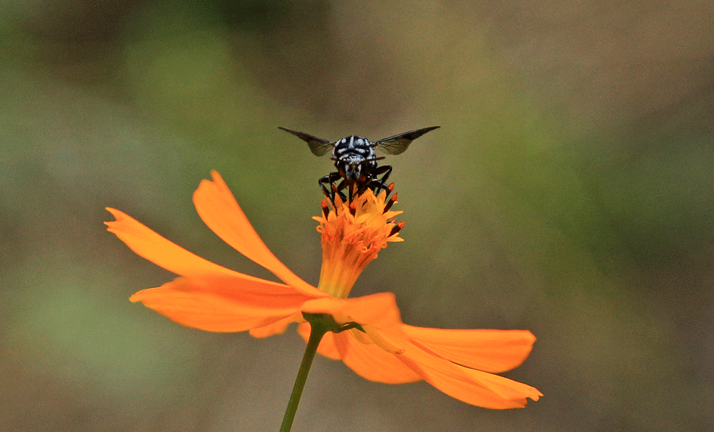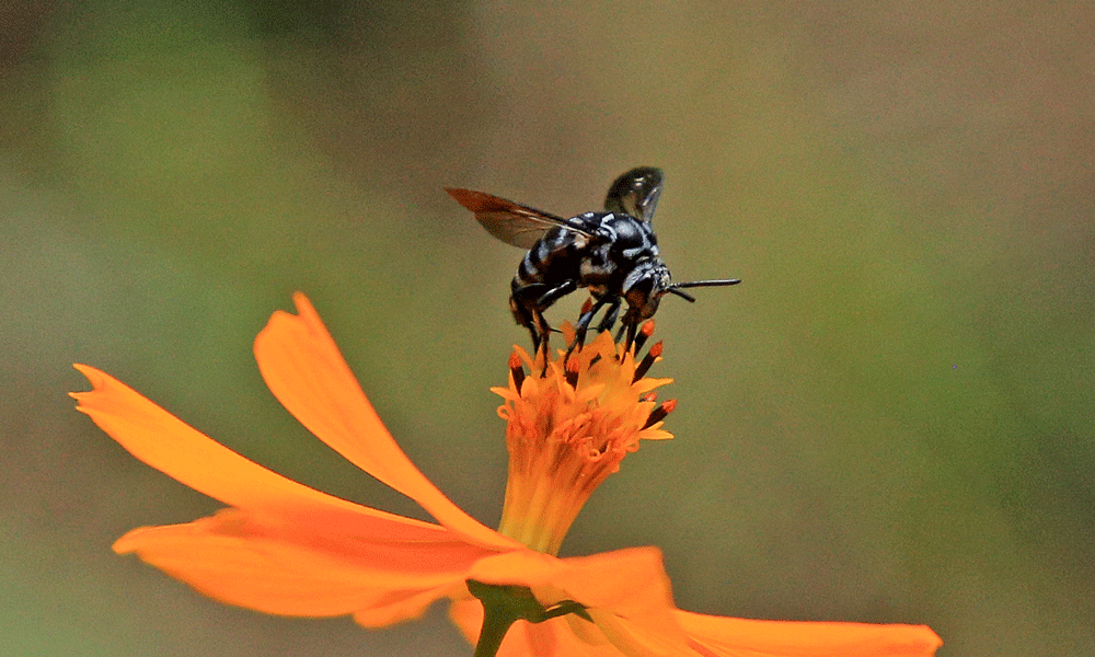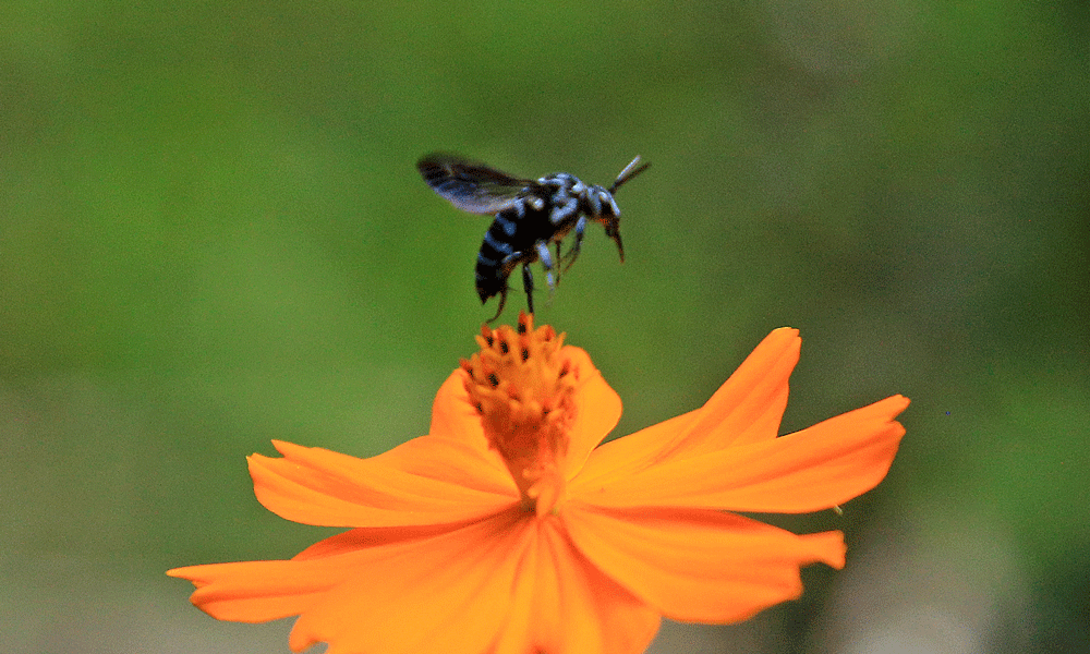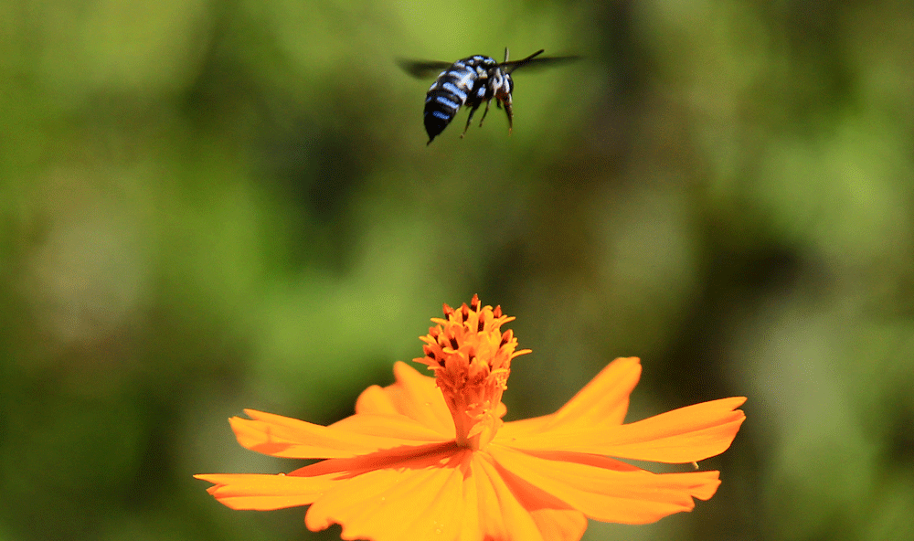 今年は日照りでキバナコスモスの咲きが非常に悪くてハチが飛んでくるのか心配した