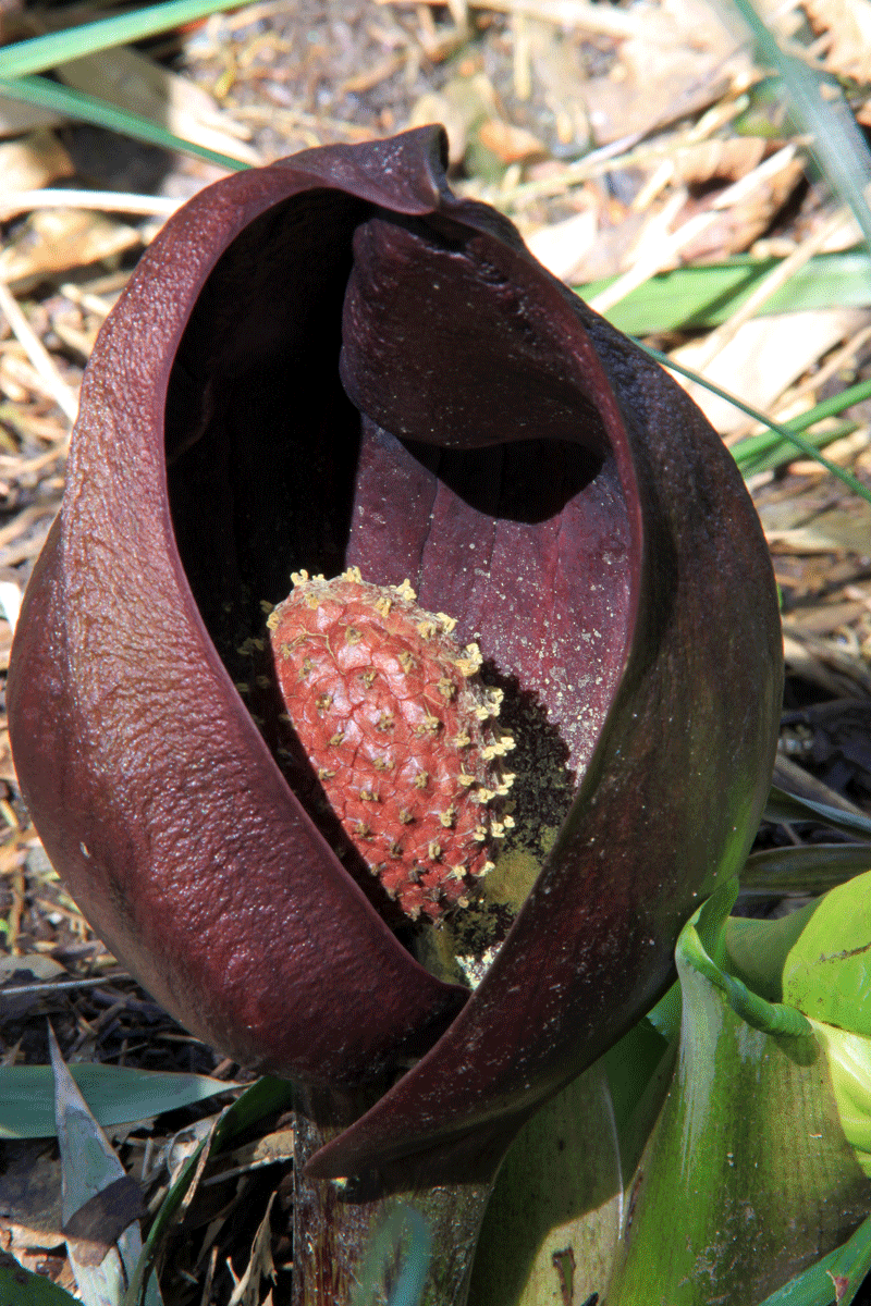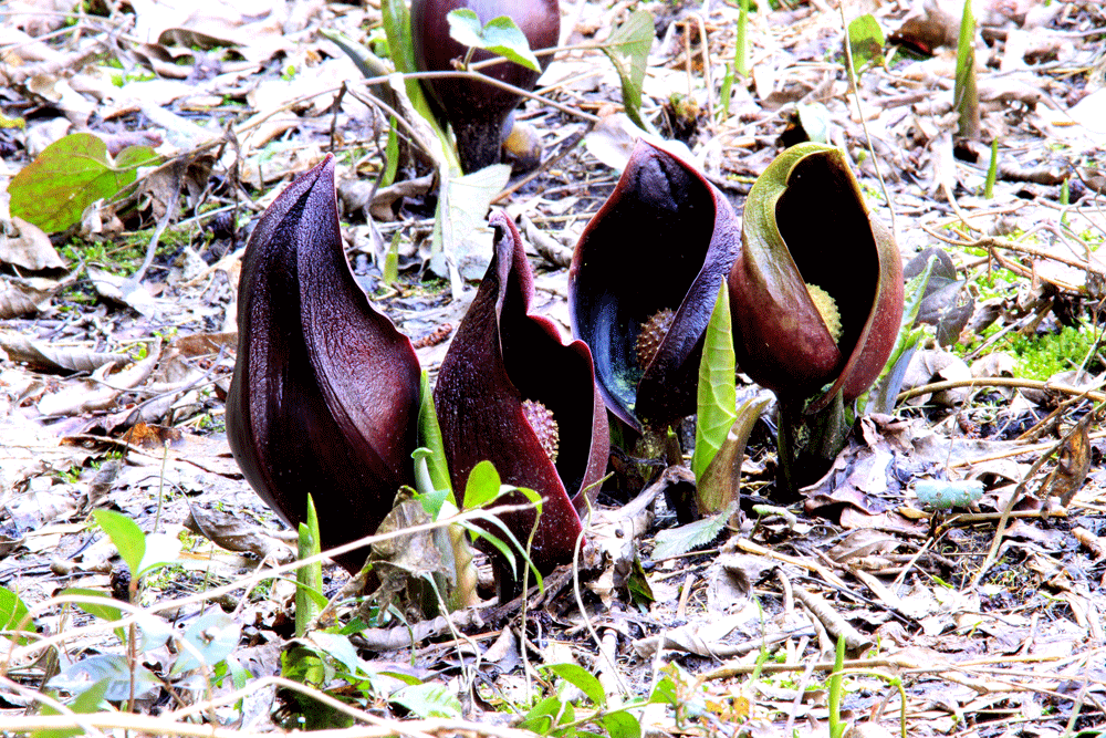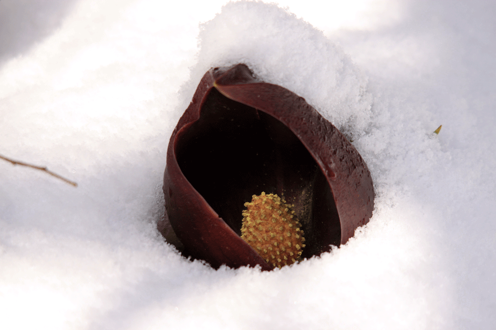 ザゼンソウ 雪が少し残り 大きな花は少なかった
