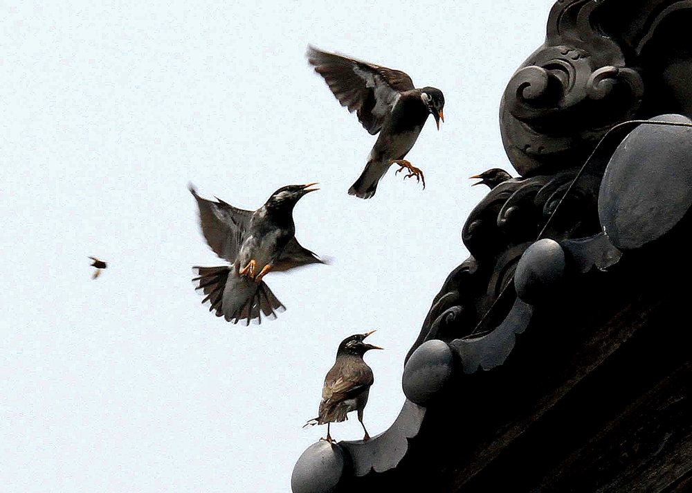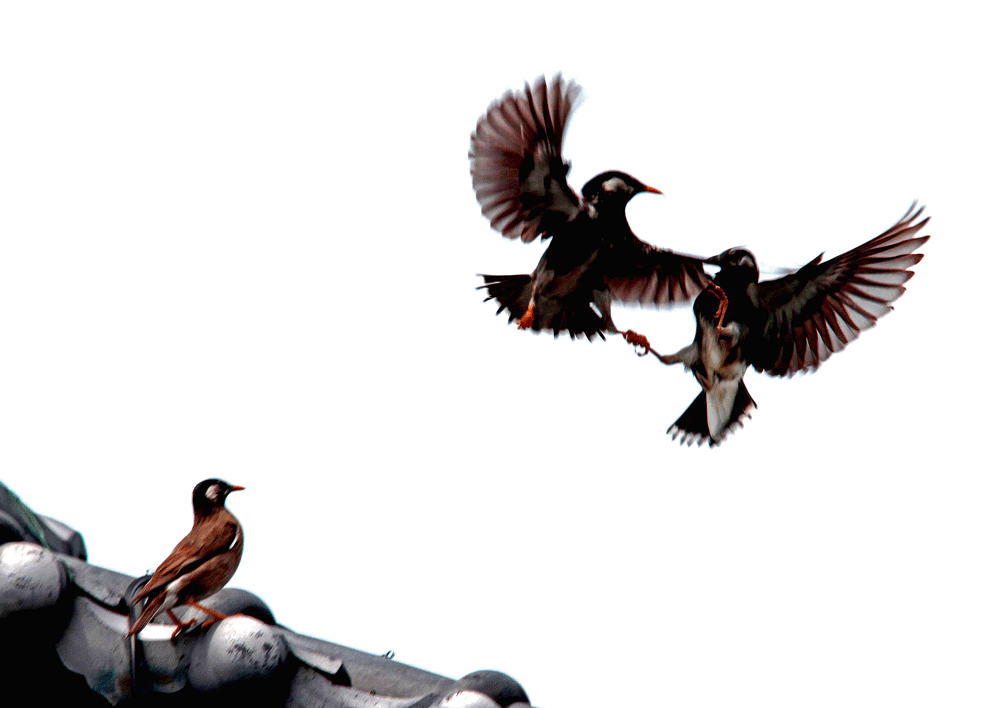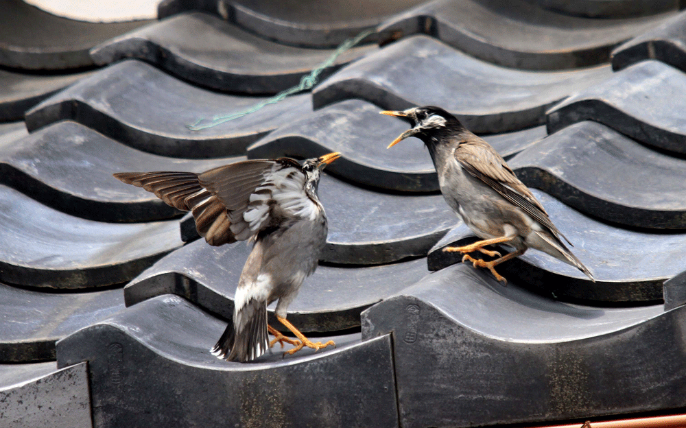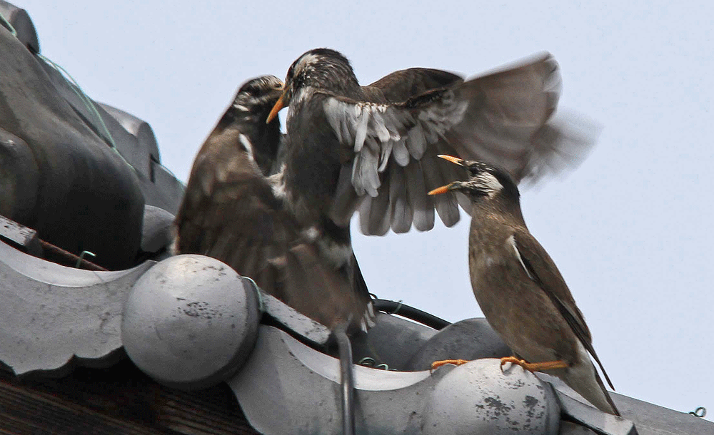 ムクドリの激しいバトル